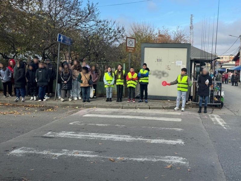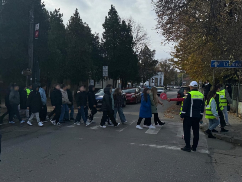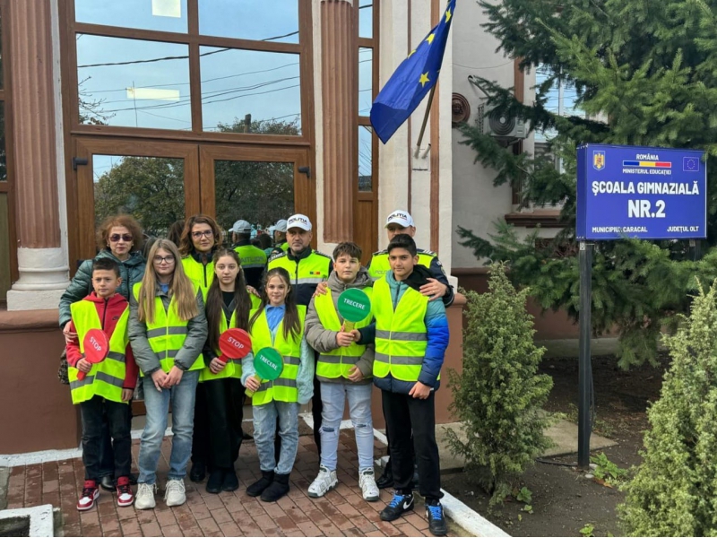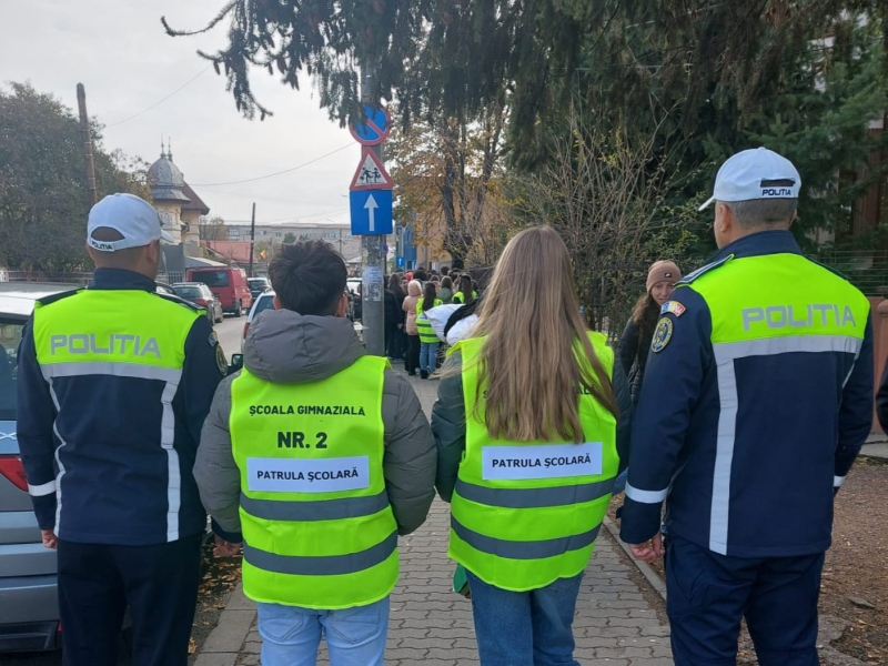 Pentru a implica direct elevii în menținerea siguranței rutiere, aceștia au fost echipați cu palete de dirijare și veste reflectorizante, inscripționate cu „PATRULA ȘCOLARĂ” și au asigurat, împreună cu polițiștii, traversarea copiilor în siguranță pe trecerea de pietoni din zona școlii.