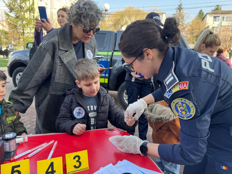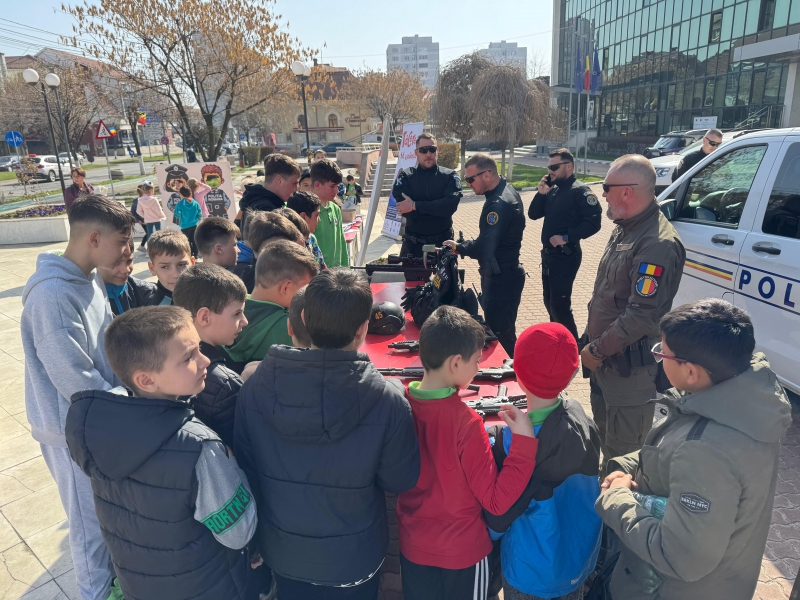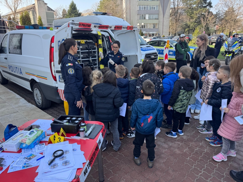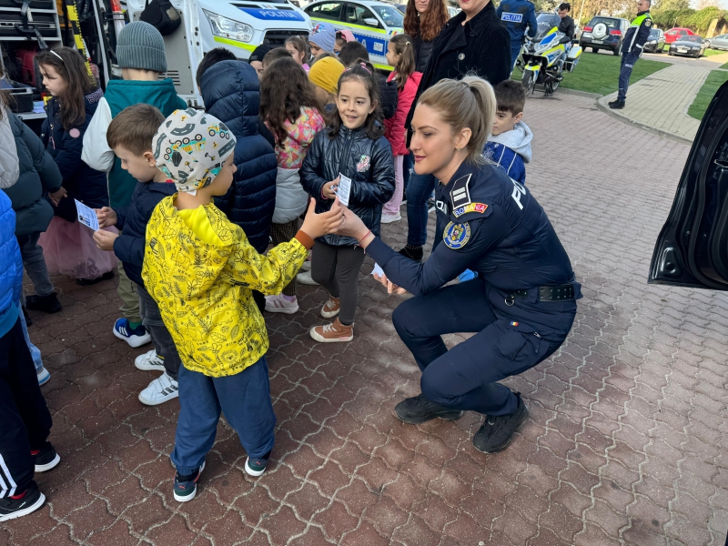 Pentru trecători, au fost distribuite materiale informative, iar copiilor le-au fost oferite bomboane, legitimații de polițist pentru o zi și insigne, pentru a marca această ocazie specială.