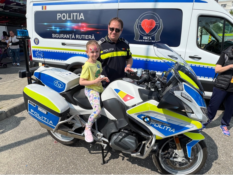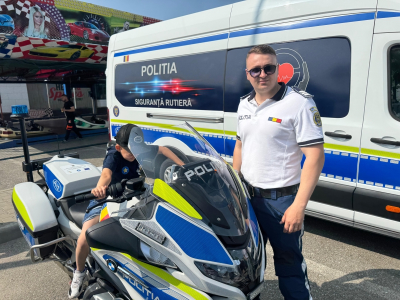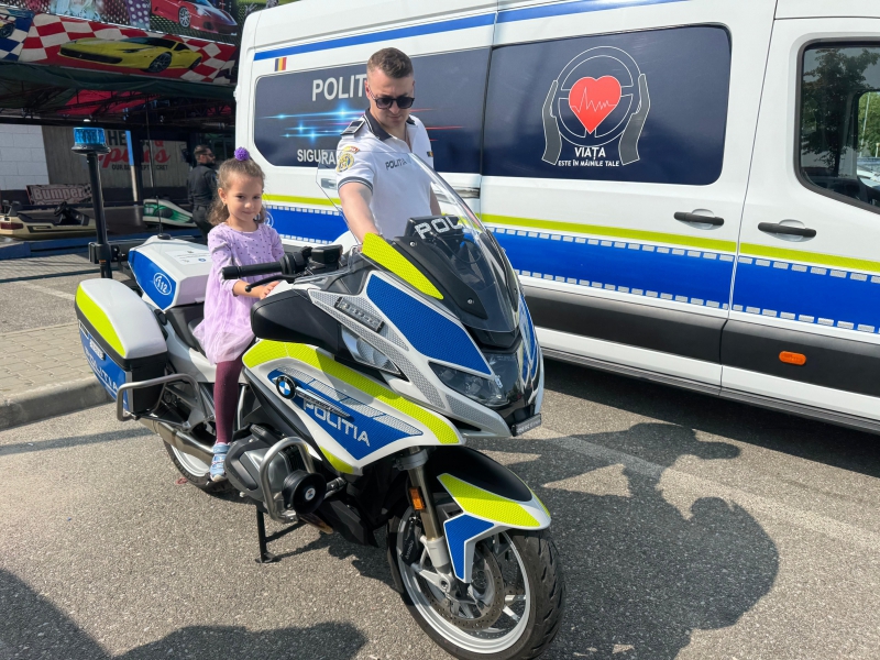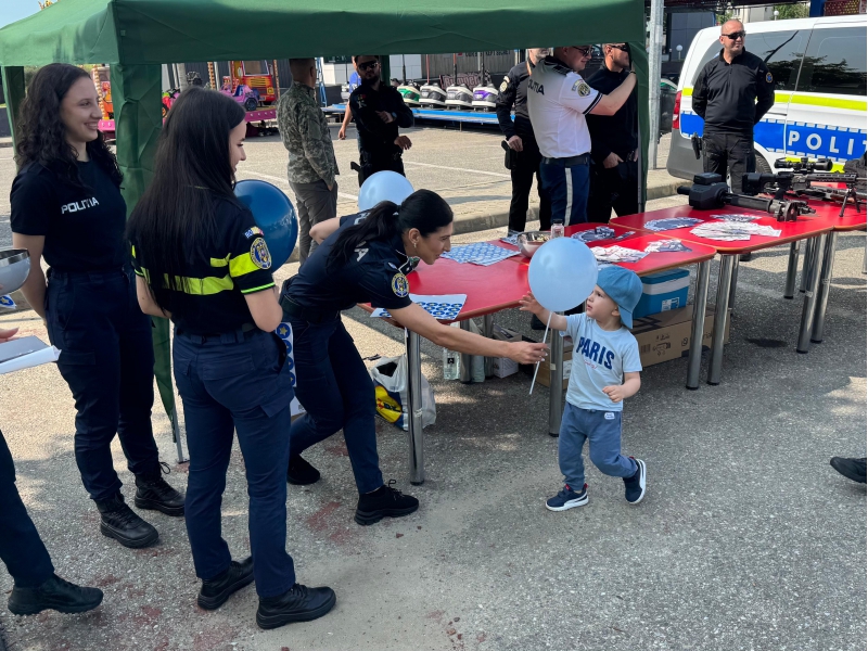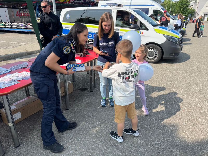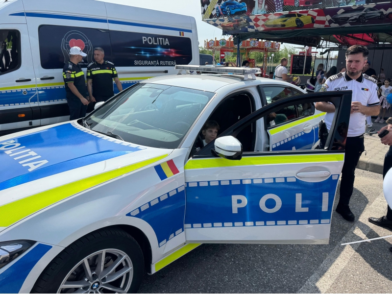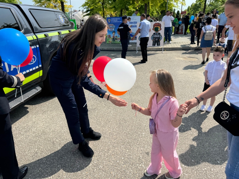 Cei mici au avut ocazia să descopere o parte din tehnica folosită de polițiști, să interacționeze direct cu polițiștii, iar bomboanele, baloanele, insignele și cadourile au completat o zi plină de entuziasm.