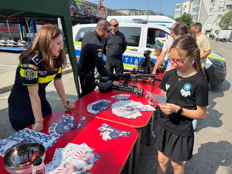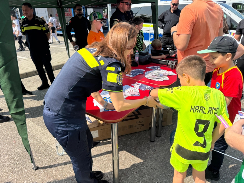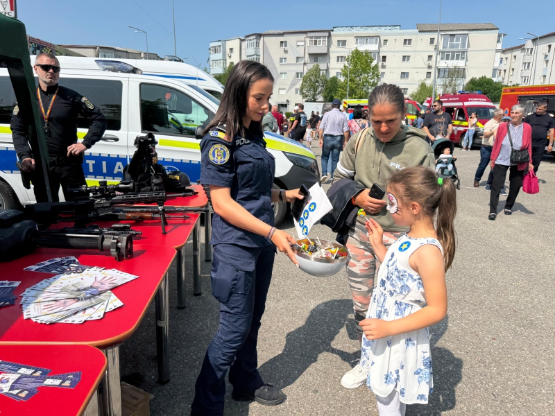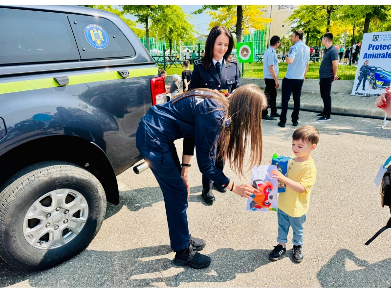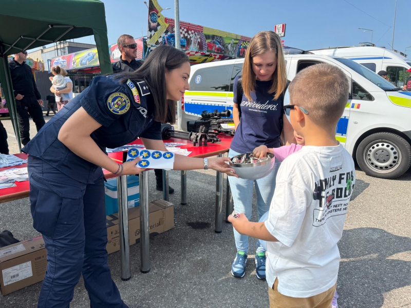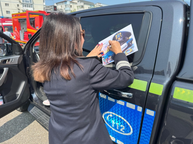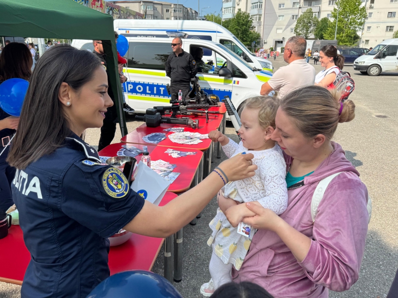 Cei mici au avut ocazia să descopere o parte din tehnica folosită de polițiști, să interacționeze direct cu polițiștii, iar bomboanele, baloanele, insignele și cadourile au completat o zi plină de entuziasm.